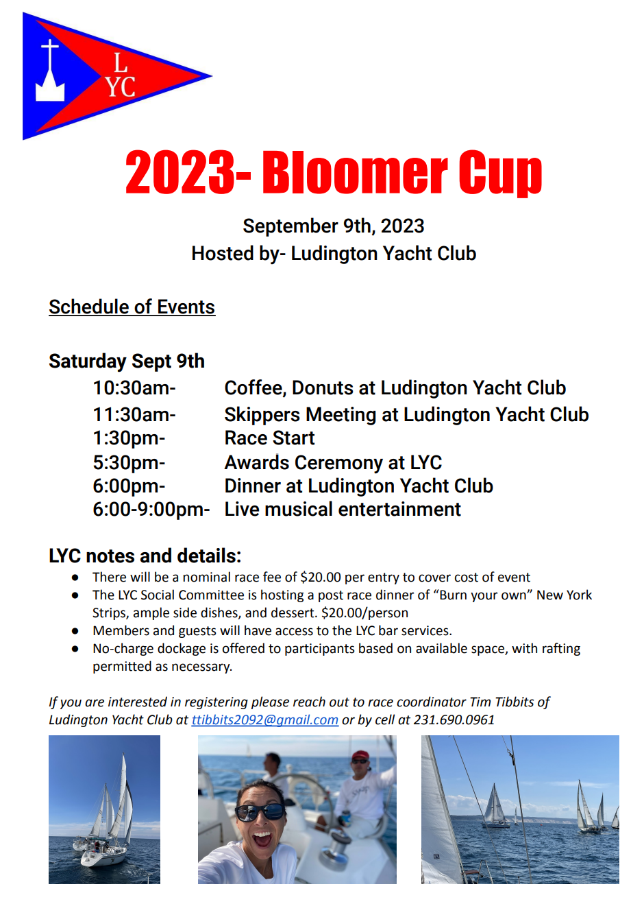The Bloomer Cup is the culmination of our racing season and is always celebrated with a fantastic day on the water followed by a great dinner and celebration at the club afterward. The Social Committee is hosting a return of the “Burn your own steak” dinner format. Delicious New York Strips, side dishes and dessert all for the low price of $20.00/person.
